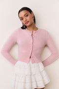Cozy chic in the Adeanne Cardigan. Designed from a luxe, soft brush cashmere fabric, this must-have knit is the perfect layer for the cold weather season. She features a bow patch on the back and self-covered buttons for a sweet finish.