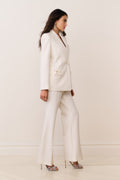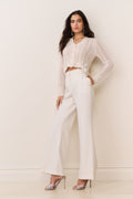 The Enly Pant arrives. Designed in our Canterbury Solid Tailoring, this medium-rise trouser features belt loops, a front fly, and crisp creases along the front and back for a clean, elongating line. Slim through the thigh before flaring gently at the hem, this full-length silhouette offers a sleek, flattering fit. Pair it with the Shayne Jacket for effortlessly polished holiday suiting.