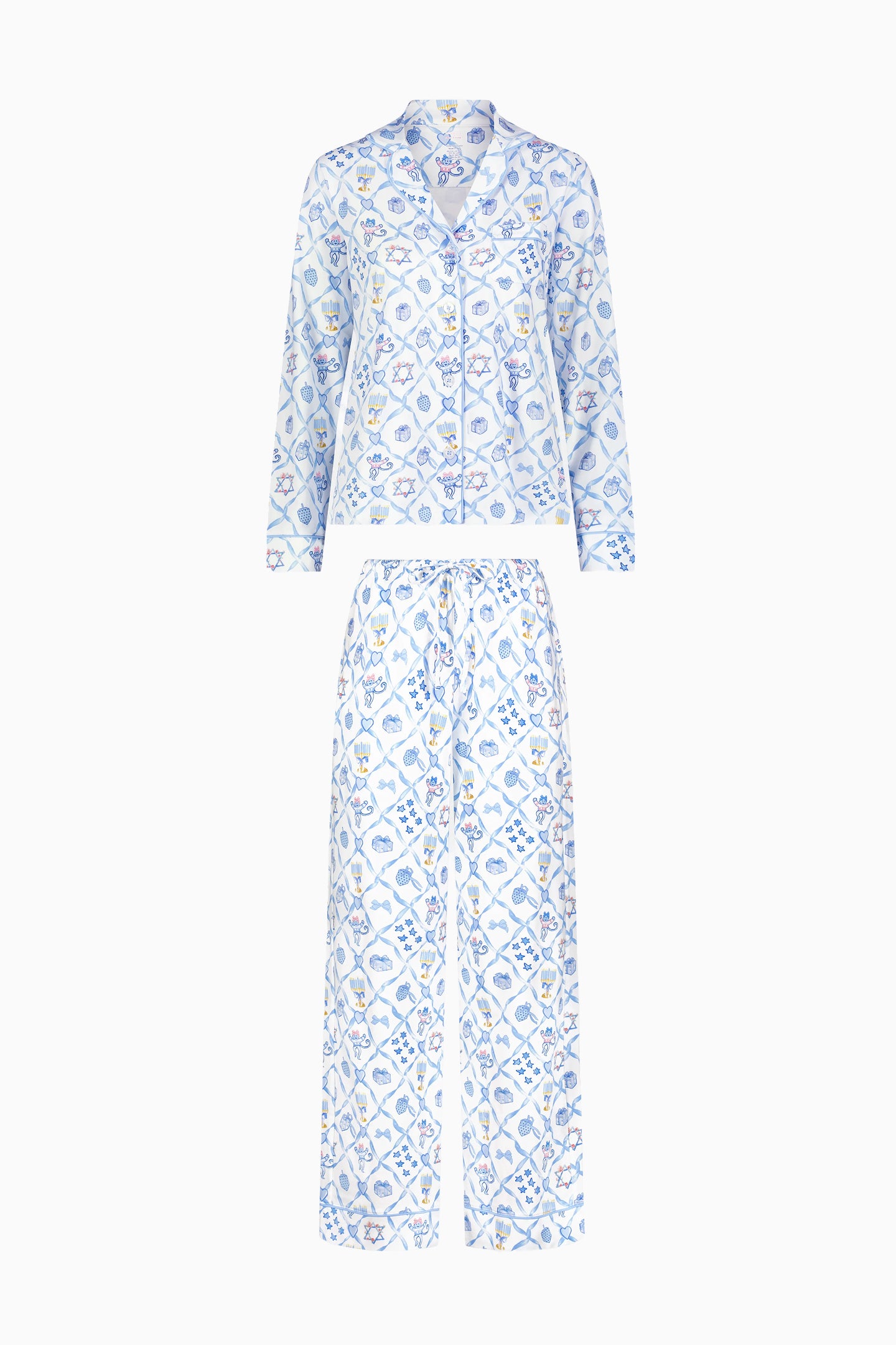 Stay cozy and cute in these festive, Hanukkah-inspired Long Sleeve Polo Pajamas from our LoveShackFancy x Roller Rabbit collab. Roller Rabbit’s fan-fave pajamas are so soft and comfortable, and with this dreamy blue print yet, you’ll live in them all season long.