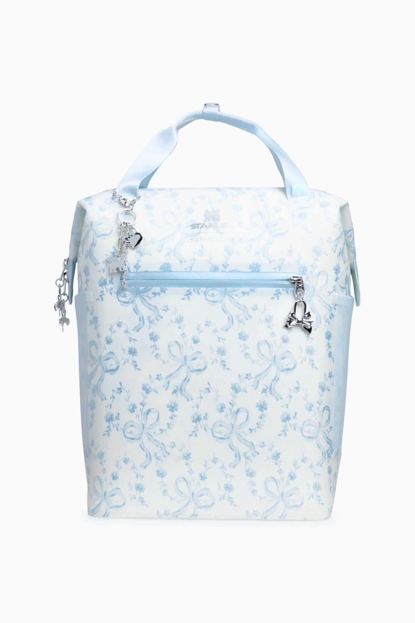 Adorned with our signature bow zipper pulls and metallic charms, the All Day Mini Cooler Backpack has a unique “doctor’s bag” hinge top that pops open for packing ease. There’s even a mesh pocket on each side, designed to fit a Quencher or your bottled drink of choice.